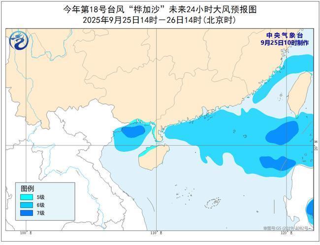 r大风预报:25日14时至26日14时鑫恒盈配资,南海北部、北部湾、广东沿海、珠江口区、广西沿海将有6-7级、阵风8-9级的大风,台风中心经过的附近海域或地区风力可达8级、阵风9-10级。