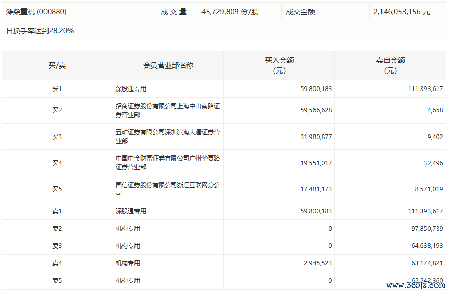潍柴重机今日跌7.86%,有4家机构专用席位净卖出2.85亿元潍柴重机今日跌7.86%,有4家机构专用席位净卖出2.85亿元
